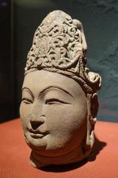 Keywords: Bodhisattva head, China, unearthed from Wanfo Temple, Chengdu, Tang dynasty, 618-907 AD, sandstone - Sichuan Provincial Museum - Chengdu, China - DSC04536.jpg en Exhibit in the Sichuan Provincial Museum 四 博物院 also known as the Sichuan Museum 251 Huanhua S Road Chengdu Sichuan China Photography was permitted in the museum without restriction This work is old enough so that it is in the public domain 2015-09-24 02 41 47 own Daderot other versions PD-old-100 cc-zero Sculptures of China in the Sichuan Provincial Museum |