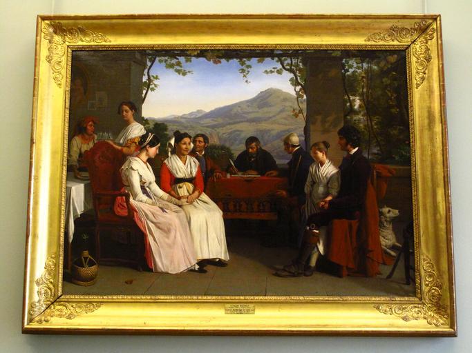 | Keywords: Bodinier - Contrat de mariage en Italie (cadre).JPG Artwork Creator Guillaume Bodinier 1831 oil on canvas Size m 1 38 1 01 Museum Louvre Sully - 2 e étage - Le paysage autour de 1800 - Salle 59 Joconde 000PE013489 object history credit line Acquis au Salon de 1831 accession number INV 2673 Sammyday 2012-03-17 PD-old-100 other versions <gallery>File Guillaume Bodinier - Contrat de mariage en Italie jpg lower resolution without frame File Bodinier - Contrat de mariage en Italie jpg without frame</gallery> Uploaded with UploadWizard French paintings in the Louvre - Room 59 Taken with Canon PowerShot G10 Guillaume Bodinier Oil paintings of people Marriage contracts in art 1831 paintings Salon of 1831 ImageNote 1 2015 2782 442 237 4416 3312 2 fr <center>Guillaume BODINIER<br/><small>Angers 1795 - Angers 1872</small><br/>Contrat de mariage en Italie <small>1831<br/>Acquis au salon de 1831<br/>INV 2673</small> ImageNoteEnd 1 |
