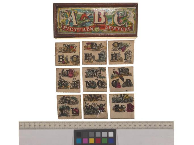 Keywords: Bodleian Libraries, A B C pictures and letters.jpg Game entitled A B C pictures and letters; Has nine blocks each except last with 3 letters Blocks have images on one side and words as above but in sixes on other Images do not all correspond to the words Wooden box Box of Johnson copy is damaged; Apple Anchor; Bat Ball; Cage Chain; Drum Dog; Earth Eagle; Fountain Fish; Globe Goose; House Horse; Inn Ink; Jug Jury; King Key; Lord Love; Monkey Mouse; Nest Nettle; Owl Own; Peacock Pear; Quite Queen; Rabbit Rattle; Sailor Ship; Turtle Truth; Uncle Urn; Vulture Voice Vain; Whale Water; Zany; Yacth sic Youth; Zero Zebra; Image 3 box 9 blocks; 66 x 165 x 33 mm exhibition history Allegro identifier 20040831/14 15 30 jl object history object type Licensed-PD-Art PD-old-100 cc-by-4 0 place of creation place of discovery http //digital bodleian ox ac uk/inquire/p//afadb78d-ee30-4385-8247-f15c44a15708 Digital Bodleian Template John Johnson A B C pictures and letters Uploaded with GWToolset Bodleian Libraries A B C pictures and letters http //iiif bodleian ox ac uk/iiif/image/52edf2e9-fadd-4a74-92f2-b5aaff99e403/full/ 1000 1000/0/default jpg Files uploaded by the Bodleian Libraries' Wikimedian In Residence Illustrated alphabets Spelling games Educational games Alphabet books