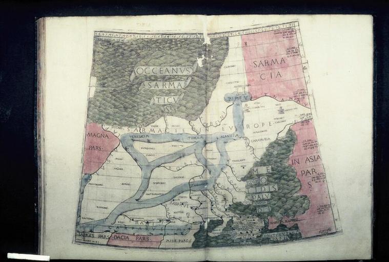 Keywords: Bodleian Libraries, Eastern Europe to the Sea of Azov.jpg The Bologna edition of Ptolemy's Geography Eastern Europe to the Sea of Azov 565 x 420 map-folio opening mm; 35mm slide exhibition history Filmstrip Roll 286 4 frame 9; Source filename BOD Auct K 1 17 object history object type Licensed-PD-Art PD-old-100 cc-by-4 0 place of creation Bologna Italy place of discovery http //digital bodleian ox ac uk/inquire/p//06fdab73-6904-4891-be55-64ebeaafe9f7 Digital Bodleian Template Bodleian Libraries Map 9 Tabula 9 Uploaded with GWToolset Bodleian Libraries Eastern Europe to the Sea of Azov http //iiif bodleian ox ac uk/iiif/image/06fdab73-6904-4891-be55-64ebeaafe9f7/full/ 1000 1000/0/default jpg Files uploaded by the Bodleian Libraries' Wikimedian In Residence Bodleian Maps Collection Bologna Ptolemy 09 Ptolemy's 8th European Map 1477 1477 maps Maps in Latin |
