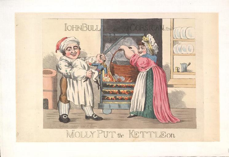 Keywords: Bodleian Libraries, John Bull preparing a Corsican stew- Molly put the kettle on.jpg Satire on the fear of French invasion 1794-1805 British political cartoon ; John Bull and his wife in their kitchen prepare to throw the little Napoleon into a boiling pot on the fire ; Bee stamp Not in BMC 245 x 316 image and text mm exhibition history Source filename politi004-apb-0001-0 object history object type Licensed-PD-Art PD-old-100 cc-by-4 0 place of creation London England Roberts place of discovery http //digital bodleian ox ac uk/inquire/p//3868cb8e-e63a-4515-a54e-d272aae4527f Digital Bodleian Template Bodleian Libraries John Bull preparing a Corsican stew Molly put the kettle on Uploaded with GWToolset Bodleian Libraries John Bull preparing a Corsican stew Molly put the kettle on http //iiif bodleian ox ac uk/iiif/image/3868cb8e-e63a-4515-a54e-d272aae4527f/full/ 1000 1000/0/default jpg Files uploaded by the Bodleian Libraries' Wikimedian In Residence Napoleonic Wars Caricatures of Napoleon I of France John Bull Curzon Collection |