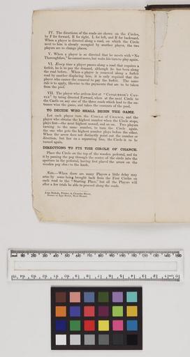 Keywords: Bodleian Libraries, Journey, or Cross-roads to conqueror's castle 29.jpg Game entitled The journey or Cross-roads to conqueror's castle; has teetotum circle of chance with 12 segments variously Forward Right Left Central panel of cover has green background In Johnson copy the cover is worn Lacks counters Board mounted on linen is cropped at top Hand colouring very similar to other copy; Cross-roads to conqueror's castle; Image 3 board; 561 x 586 open mm; 148 x 148 x 12 folded mm exhibition history 007201 object history object type <gallery> File Bodleian Libraries Journey or Cross roads to Conquerors Castle- Cross roads to Conquerors Castle jpg File Bodleian Libraries Journey or Cross roads to Conquerors Castle- Cross roads to Conquerors Castle 151 jpg File Bodleian Libraries Journey or Cross roads to Conquerors Castle- Cross roads to Conquerors Castle 150 jpg File Bodleian Libraries Journey or Cross-roads to conqueror's castle 30 jpg File Bodleian Libraries Journey or Cross-roads to conqueror's castle jpg File Bodleian Libraries Journey or Cross-roads to conqueror's castle teetotum jpg </gallery> Licensed-PD-Art PD-old-100 cc-by-4 0 place of creation London England William Spooner place of discovery http //digital bodleian ox ac uk/inquire/p//b14fa39d-b7eb-460d-9291-3a0ea6c257f1 Digital Bodleian Template John Johnson Journey or Cross-roads to conqueror's castle Uploaded with GWToolset Bodleian Libraries Journey or Cross-roads to conqueror's castle_29 http //iiif bodleian ox ac uk/iiif/image/4fc633be-4d99-466b-beef-cbe97cf4eede/full/ 1000 1000/0/default jpg Files uploaded by the Bodleian Libraries' Wikimedian In Residence Board games |
