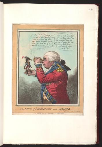 | Keywords: Bodleian Libraries, The king of Brobdingnag, and Gulliver.jpg accession number Curzon b 4 22 Braddyll Thomas 1776-1862 artist - attributed Caricature of Napoleon I British political cartoon ; George III as the King of Brobdingnag wearing military uniform holds the tiny Napoleon as Gulliver in his hand ; Artist from BMC 314 x 245 sheet mm exhibition history Source filename politi004-aam-0001-0 object history object type Licensed-PD-Art PD-old-100 cc-by-4 0 place of creation London England Hannah Humphrey place of discovery http //digital bodleian ox ac uk/inquire/p//75c29963-e304-43b9-8d2b-e845e8b4fdb5 Digital Bodleian Template Bodleian Libraries The king of Brobdingnag and Gulliver Uploaded with GWToolset Bodleian Libraries The king of Brobdingnag and Gulliver http //iiif bodleian ox ac uk/iiif/image/75c29963-e304-43b9-8d2b-e845e8b4fdb5/full/ 1000 1000/0/default jpg Files uploaded by the Bodleian Libraries' Wikimedian In Residence Caricatures of Napoleon I of France George III of the United Kingdom Napoleonic Wars Swift Jonathan 1667-1745 Gulliver's Travels -- Allusions Curzon Collection |