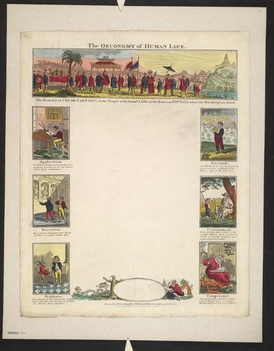 | Keywords: Bodleian Libraries, Oeconomy of human life.jpg Writing blank entitled The oeconomy of human life; pencil annotation at top left 2/6 single sheet; 478 x 384 mm; paper exhibition history Embassy of Colao Caotsou to the Temple of the Grand Lama on the Mountain Poutala where the manuscript was found; Application The hand of diligence defeateth want prosperity and success are the industrious man's attendance; Fortitude As a rock in the sea he standeth firm and the dashing of the waves disturbeth him not; Emulation By a virtuous emulation the spirit of man is exalted within him; Contentment To be satisfied with a little is the greatest wisdom and a contented mind is a hidden treasure and a guard from trouble; Prudence Put a bridle on thy tongue for a guide before thy lips lest the words of thine own mouth destroy thy peace; Temperance The nearest approach thou canst make to happiness is to enjoy health wisdom peace of mind; object history object type Licensed-PD-Art PD-old-100 cc-by-4 0 place of creation London England place of discovery http //digital bodleian ox ac uk/inquire/p//9a04cdcb-2bc4-46e5-b18b-7f77b2281c1d Digital Bodleian Template John Johnson Oeconomy of human life Uploaded with GWToolset Bodleian Libraries Oeconomy of human life http //iiif bodleian ox ac uk/iiif/image/9a04cdcb-2bc4-46e5-b18b-7f77b2281c1d/full/ 1000 1000/0/default jpg Files uploaded by the Bodleian Libraries' Wikimedian In Residence Writing blanks Desks Reading Globes Lighting Sculptures Country life Fools and jesters Hermits Caves Parades and processions Temples in art busts |