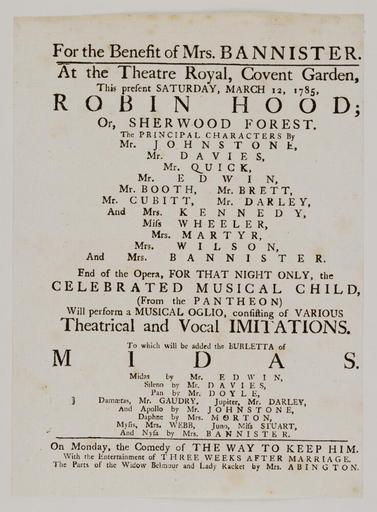 | Keywords: Bodleian Libraries, Playbill of Covent Garden, Saturday, March 12, 1785, announcing Robin Hood; or, Sherwood forest &c..jpg Playbill of Covent Garden Saturday March 12 1785 announcing Robin Hood; or Sherwood forest c for the benefit of Mrs Bannister; Robin Hood; or Sherwood forest; Theatrical and vocal imitations; Midas; Way to keep him; Three weeks after marriage; Playbill of Covent Garden Saturday March 12 1785 announcing Robin Hood; or Sherwood forest c single sheet; 248 x 180 mm exhibition history For the benefit of Mrs Bannister Allegro identifier 20010704/14 02 57 af object history object type Licensed-PD-Art PD-old-100 cc-by-4 0 place of creation s l England s n place of discovery http //digital bodleian ox ac uk/inquire/p//9c01f7ba-c64f-4777-b8f0-51a006520061 Digital Bodleian Template John Johnson Playbill of Covent Garden Saturday March 12 1785 announcing Robin Hood; or Sherwood forest c Uploaded with GWToolset Bodleian Libraries Playbill of Covent Garden Saturday March 12 1785 announcing Robin Hood; or Sherwood forest c http //iiif bodleian ox ac uk/iiif/image/9c01f7ba-c64f-4777-b8f0-51a006520061/full/ 1000 1000/0/default jpg Files uploaded by the Bodleian Libraries' Wikimedian In Residence Playbills Child actors Robin Hood Legendary character Pantheon Oxford Street London England opera |