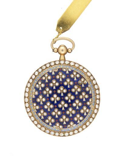 | Keywords: Boett från 1800 cirka - Hallwylska museet - 98902.tif  LSH artwork sv Boett av guld med emalj och orientaliska pärlor verk med s k spindelgång Bottenskal svagt konvext löst utan scharner På skalet ett klöverbladsmönster av pärlor på snedrutad botten av mörkblå genomskinlig translucide emalj med ett uppåtriktat blad i varje ruta varje blad med tre djupt i emaljen infattade pärlor och skaft i vit täckemalj samt begränsat av en smal guldrand i korsningarna mellan rutorna en liten pärla av röd genomskinlig emalj Däromkring en bård varpå i guld mot ljusblå botten i täckemalj parvis längdställda korta streck och runda prickar mellan två smala kantränder Kring ytterkanten en rad av fyrtiosex pärlor fattade i faden och med avdeckningar; kring sidokanten en smal käl Glasram med svagt konvext glas och i dekor som bottenskalets ytterkant samt med en rad av fyrtiofyra pärlor<br/>Gåva från kungen till grevinnan Christina Maria Sommerhjelm<br/>lefi 2015-08-12 original caption Boett från 1800 cirka <br/> Nyckelord Föremålsbild Fickur Emalj ca 1800 size cm 9 etui g 33 3 size cm 3 8 size cm 7 1 etui size cm 2 3 etui g 39 3 etui HWY Det Glittrar prel till 30 aug 2015 2014-2015 Livrustkammaren place of origin FR original filename hm_dig14100 16127 inventory number HWY XXXVIII G a 21 98902 CC-BY-SA Erik Lernestål <gallery caption Different images of same object > File Fickur 1800 cirka - Hallwylska museet - 98901 tif </gallery> Enamel Accessories Pocket watches Erik Lernestål Media contributed by LSH dim-with multiple size templates Media contributed by LSH unmatched keyword Media contributed by LSH 2015-11 |