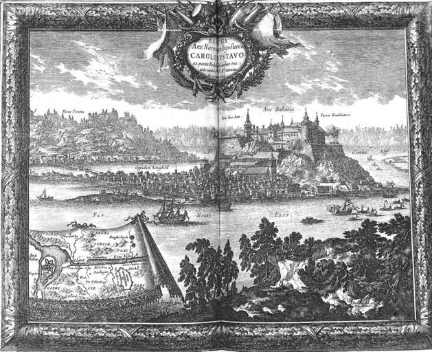 | Keywords: Bohus1658-2.jpg en The Swedish king Charles X Gustav visits the fortress Bohus and the town Kungälv 30 Mars 1658 Copper engraving by Samuel von Pufendorf in De rebus a Carolo Gustavo gestis sv Kung Karl X Gustav besöker Bohus fästning och staden Kungälv kort efter det svenska övertagandet den 30 mars 1658 Från Karl X Gustavs bragder av Samuel von Pufendorf Gdt B 219 80 Kopparstick Samuel von Pufendorf 1658 PD-old-100 Bohus fästning 1658 in Sweden | ||||