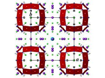 Keywords: Boleite 001.png en Crystal structure of boleite KPb26Ag9Cu24Cl62 OH 48 Pm-3m viewed along the c direction Purple lead atoms black silver atoms red copper atoms cyan potassium atoms green chlorine atoms blue oxygen atoms gray hydrogen atoms own Perditax 2010-08-31 Boleite Crystal structures in space group number 221 |