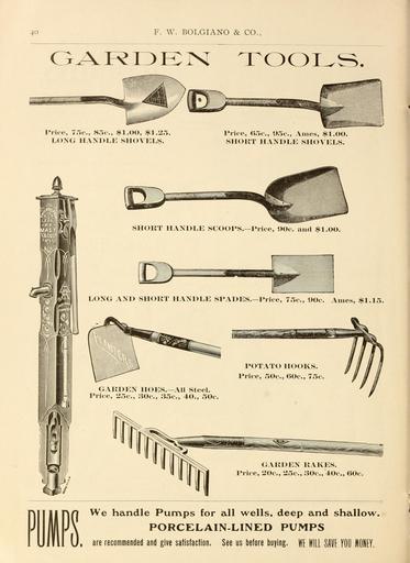 | Keywords: Bolgiano's 1902 catalogue (16350029715).jpg 4 o <br> F W BOLGIANO CO <br> GARDEN TOOLS <br> Price 75c 85c 1 00 1 25 <br> LONG HANDLE SHOVELS <br> Price 65c 95c Ames 1 00 <br> SHORT HANDLE SHOVELS <br> – <br> SHORT HANDLE SCOOPS -Price 90c and 1 00 <br> In I HI <br> LONG AND SHORT HANDLE SPADES -Price 75c 90c Ames 1 15 <br> GARDEN HOES ” All Steel <br> Price 25c 30c 35c 40 50c <br> POTATO HOOKS <br> Price 50c 60c 75c <br> GARDEN RAKES <br> Price 20c 25c 30c 40c OOc <br> D <br> We handle Pumps for all wells deep and shallow <br> PORCELAIN-LINED PUMPS <br> are recommended and give satisfaction See us before buying WE WILL SAVE YOU MONEY 42156290 132756 65911 Page 40 Text http //www biodiversitylibrary org/page/42156290 1902 10 5962/bhl title 65911 F W Bolgiano Co ; Henry G Gilbert Nursery and Seed Trade Catalog Collection Biodiversity Heritage Library Bolgiano's 1902 catalogue tested seeds for the garden and farm Garden Stories Bulbs Plants Catalogs Fruit Garden tools Nurseries Horticulture Seeds Vegetables U S Department of Agriculture National Agricultural Library bhl page 42156290 dc identifier http //biodiversitylibrary org/page/42156290 bhlGardenStories BHLinbloom bulbs plants nurseries horticulture u s department of agriculture national agricultural library bhlgardenstories bhlinbloom Information field Flickr posted date ISOdate 2015-01-23 Check categories 2015 August 24 CC-BY-2 0 BioDivLibrary https //flickr com/photos/61021753 N02/16350029715 2015-08-24 08 53 39 cc-by-2 0 PD-old-70-1923 Bolgiano's 1902 catalogue Photos uploaded from Flickr by Fæ using a script |