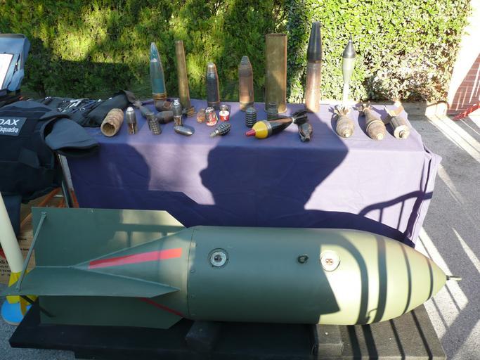 | Keywords: Bombes.JPG  en Some bombs of the Spanish Civil War disabled by the Catalan police department bomb disposal ca Algunes de les bombes de la Guerra Civil desactivades pels TEDAX dels Mossos d'Esquadra own Galazan 19 de febrer del 2011 Air-dropped bombs Mossos d'Esquadra Public Safety Bomb Disposal Spanish Civil War artillery Spanish Post-war Mortar ammunition Hand grenades |