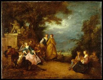 | Keywords: Bonaventure de Bar - Fête Champêtre - Walters 37413.jpg This painting was originally attributed to Jean Baptiste Joseph Pater an artist who specialized in idealized park scenes with amorous couples known as fêtes champêtres a category of painting associated with the early 18th-century master Jean-Antoine Watteau 1684-1721 Recent research has indicated that it is more likely by Bonaventure de Bar a follower of Watteau ca 1730 Oil on canvas cm 36 2 46 3 ; framed cm 66 76 2 11 4 accession number 37 413 25820 Glaenzer and Co Henry Walters Baltimore 1904 mode of acquisition unknown Walters Art Museum Henry Walters Acquired by Henry Walters 1904 place of origin France Walters Art Museum license 2D Bonaventure de Bar Media contributed by the Walters Art Museum needs category review French paintings in the Walters Art Museum Media contributed by the Walters Art Museum needs artist update 1730s paintings from France |