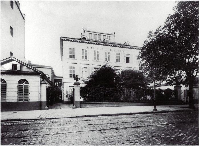 | Keywords: Bonn Villa Wutzer 1898.jpg Villa Wutzer zum Zeitpunkt der Aufnahme Teil des Hotel Kley; erbaut 1834/35 1905 abgebrochen Coblenzerstraße 3 Bonn Ansicht von der Coblenzerstraße am rechten Bildrand südliches Nebengebäude am linken Bildrand nördliches Nebengebäude mit zwei goßen Rundbogenfenstern in der Straßenflucht Archiv Dr Hanns Eller<br />Olga Sonntag Villen am Bonner Rheinufer 1819 “1914 Bonn 1998 ISBN 3-922832-21-0 Band 2 Katalog 1 S 34 ~ 1898 Photograph Schauer PD-old Coblenzerstraße 3 Bonn; 1835 “1905 Bonn in the 1890s |