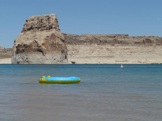 Keywords: boot dinghy water lake powell reservoir lake arizona utah usa wide beautiful rest balance peace blue