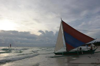 Keywords: boracay beach beach sea sunset whet is the only boat republic of the philippines island waves