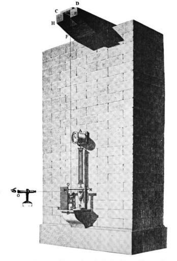 | Keywords: Borda and Cassini pendulum experiment.png Drawing of pendulum experiment to determine the length of the seconds pendulum at Paris conducted in 1792 by Jean-Charles de Borda and Jean-Dominique Cassini From their original paper They used a pendulum that consisted of a 1 1/2 inch 3 8 cm platinum ball suspended by a 12 foot 3 97 m iron wire F Q It was suspended in front of the pendulum B of a precision clock A Alterations to image moved observer O closer to wall to reduce unwieldy size of image converted to PNG Image shows aliasing artifacts crosshatching from scanning of original halftone image Downloaded 2009-01-27 from http //books google com/books id A1IqAAAAMAAJ pg RA2-PA317 Victor F Lenzen Robert P Multauf 1964 'Paper 44 Development of gravity pendulums in the 19th century' in United States National Museum Bulletin 240 Contributions from the Museum of History and Technology reprinted in Bulletin of the Smithsonian Institution 1964 Smithsonian Institution Press USA p 317 fig 13 on Google Books Image credited in text to J C Borda and J D Cassini de Thury 'Experiénces pour connaitre la longuer de pendule qui bat les secondes à Paris' in Collection de Mémoires Relatifs a la Physique publiés par la Société Française de Physique Vol 4 Mémoires sur le pedule précédés d'une bibliographie Gauthier-Villars Paris 1889 Plate 2 1889 Jean-Charles de Borda and Jean-Dominique Cassini Public domain - Borda died in 1799 Cassini in 1845 PD-old Pendulums Gravimetry Jean-Charles de Borda Giovanni Cassini |