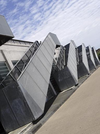 Keywords: bordeaux stairs metal city geometry vertical gateways architecture building sky clouds blue white boarding markets concrete