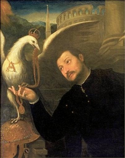 Keywords: Bordone Gian Jacopo Caraglio.JPG Artwork Creator Paris Bordone 1552 oil canvas cm 139 106 5 Institution Wawel Royal Castle accession number object history < 1664 transfer Muselli Collection Verona century 18 transfer Louis-Philippe d'Orléans century 18 transfer Douglas Blackett Matfen Hall ProvenanceEvent 1952 purchase Joseph McCrindle ProvenanceEvent 1968 purchase Andrzej Ciechanowiecki ProvenanceEvent 1972 deposit Wawel Royal Castle credit line AETATIS/SVAE/ANN O /XXXX/VII Displayed during temporary exhibition Europa Jagellonica in the National Museum in Warsaw ed Jiři Fajt Markus Hörsch Susanne Jaeger 2012 Europa Jagellonica 1386-1572 sztuka i kultura w Europie Środkowej za panowania Jagiellonów Arx Regia ISBN 97-88370221-95-9 cat no I 88 p 117 Jerzy Szablowski 1990 Zbiory Zamku Królewskiego na Wawelu Arkady PD-old-100 ImageNote 1 146 8 135 44 333 423 2 Roman theatre in Verona place of Caraglio's birth ImageNoteEnd 1 ImageNote 2 2 61 126 156 333 423 2 Polish White Eagle with Royal monogram on his chest simbolising the patronage of King Sigismund Augustus SA ImageNoteEnd 2 ImageNote 3 17 226 86 88 333 423 2 Caraglio receiving medallion with King's effigy as a proof of his nobilitation and Royal support ImageNoteEnd 3 DEFAULTSORT 1552; Gian Jacopo Caraglio Paintings by Paris Bordone Italian paintings in the Wawel Castle Europa Jagellonica Jacopo Caraglio Verona in art Memorabilia of Sigismund Augustus Historical coats of arms of Poland in art Portraits of jewelers Portraits with birds Allegorical portraits 1552 paintings 1550s portrait paintings 16th-century oil on canvas paintings in Poland 1550s paintings from Italy 1550s paintings in Poland
