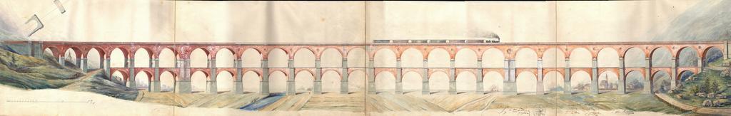 | Keywords: Borovnica viaduct-Ghega's original plan.jpg Carl von Ghega's original plan for the Borovnica viaduct in German also known as Franzdorfer Viadukt from 1850 The planned viaduct should be supported by 25 pillars the actual one completed in 1856 contained only 24 More info at the http //www vlaki info/forum/viewtopic php f 21 t 3514 Vlaki info discussion board in Slovene language Ghegov prvotni načrt za borovniški viadukt iz leta 1850 Prvotno načrtovan viadukt bi moral stati na 25 stebrih dejansko narejen končan 1856 jih je imel 24 Več podatkov na http //www vlaki info/forum/viewtopic php f 21 t 3514 na forumu Vlaki info Original plans from http //www arhiv gov si/en/ Archives od the Republic of Slovenia this image downloaded from http //www shrani si/ g/Uq/2DlmWavy/1/viaduktborovnicasmall jpg Original plan Carl Ritter von Ghega scanned and assembled by železocestnik on vlaki info discussion board 1850-04-13 The plan was drawn in 1850 Carl von Ghega died in 1860 45 55 9 5 N 14 21 52 9 E PD-old assessments 1 Historical images of the Borovnica Viaduct 19th-century images of Slovenia Archives of the Republic of Slovenia Historical construction drawings |