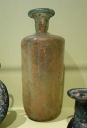 | Keywords: Bottle, attributed to southern Syria, 200-300 AD, free-blown glass, waisted neck, rolled and flared rim - Huntington Museum of Art - DSC04833.JPG en Exhibit in the Huntington Museum of Art Huntington West Virginia USA Photography was permitted in the museum without restriction This artwork is in the public domain because the artist died more than 70 years ago 2013-05-16 13 38 37 own Daderot cc-zero Uploaded with UploadWizard Glassware in the Huntington Museum of Art 3rd-century glassware |