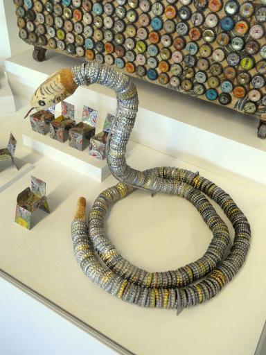Keywords: Bottle cap snake - Museum of International Folk Art - DSC09187.JPG Folk art item exhibited in the San Francisco airport San Franciso California USA Item from the collection of the Museum of International Folk Art Santa Fe New Mexico USA There were no restrictions on photography in this exhibit I took this photograph 2011-06-16 10 39 01 Daderot Public domain Museum of International Folk Art Objects made with bottle caps Snakes in art Found objects art |