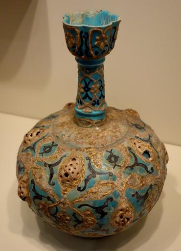 | Keywords: Bottle, Iran, Rayy, Seljuk period, 13th century AD, earthenware with pierced gilt bosses and black paint over turquoise glaze - Cincinnati Art Museum - DSC03993.JPG en Exhibit in the Cincinnati Art Museum Cincinnati Ohio USA This artwork is in the public domain because the artist died more than 70 years ago Photography was permitted in the museum without restriction 2013-05-14 11 14 33 own Daderot cc-zero Uploaded with UploadWizard Seljuk pottery in the Cincinnati Art Museum Ceramics of Iran |