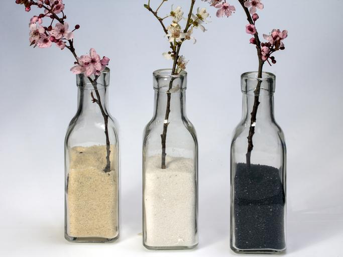 Keywords: bottles sand decorative sand glass glass bottle flowers spring blossoms still life