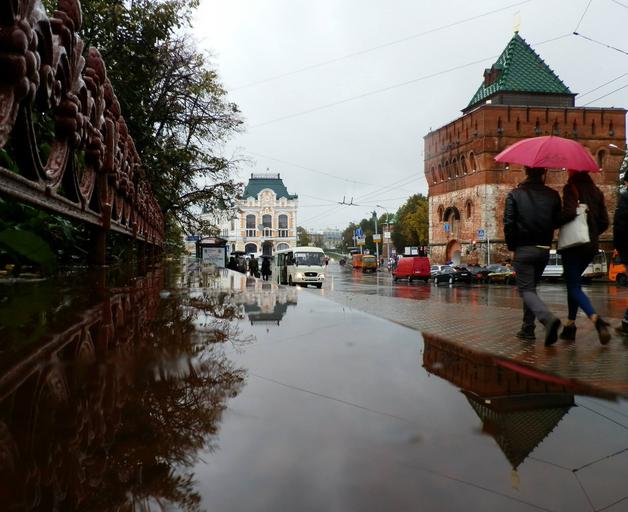 Keywords: bottom nizhniy novgorod the kremlin street rain people traffic bus stop russia city