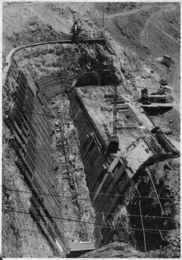| Keywords: Boulder Dam, looking upstream through Nevada sillway. At left are seen two panels of the overflow weir under... - NARA - 293886.jpg Scope and content Photograph from Volume Two of a series of photo albums documenting the construction of Hoover Dam Boulder City Nevada General notes 293886 Local identifier Department of the Interior Bureau of Reclamation Engineering and Research Center 05/18/1981 - 03/04/1988 NARA's Rocky Mountain Region Denver NRGA Building 48 Denver Federal Center West 6th Avenue and Kipling Street Denver CO 80225-0307 1933-06-10 Record group Record Group 115 Records of the Bureau of Reclamation 1889 - 2008 Record group ARC 444 Photograph albums compiled 1903 - 1972 Series ARC 293611 File unit File unit ARC Variant control numbers NAIL Control Number NRG-115-CONSTPHO85006-BC21760 Other versions <gallery> File Boulder Dam looking upstream through Nevada sillway At left are seen two panels of the overflow weir under - NARA - 293886 tif tif </gallery> NARA-cooperation PD-USGov Construction of the Hoover Dam |