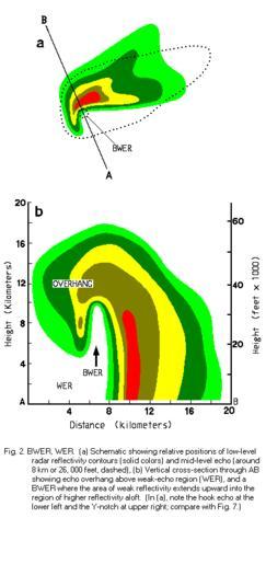 | Keywords: Bounded weak echo region.gif en Idealized radar schematics of a bounded weak echo region BWER which is found in some supercell thunderstorms 2014-06-01 16 54 12 http //www srh noaa gov/oun/ n spotterglossary-figure2 Schematics of a bounded weak echo region BWER a radar signature of some supercell thunderstorms PD-USGov Uploaded with UploadWizard Diagrams of supercells Radar images of thunderstorms | ||||