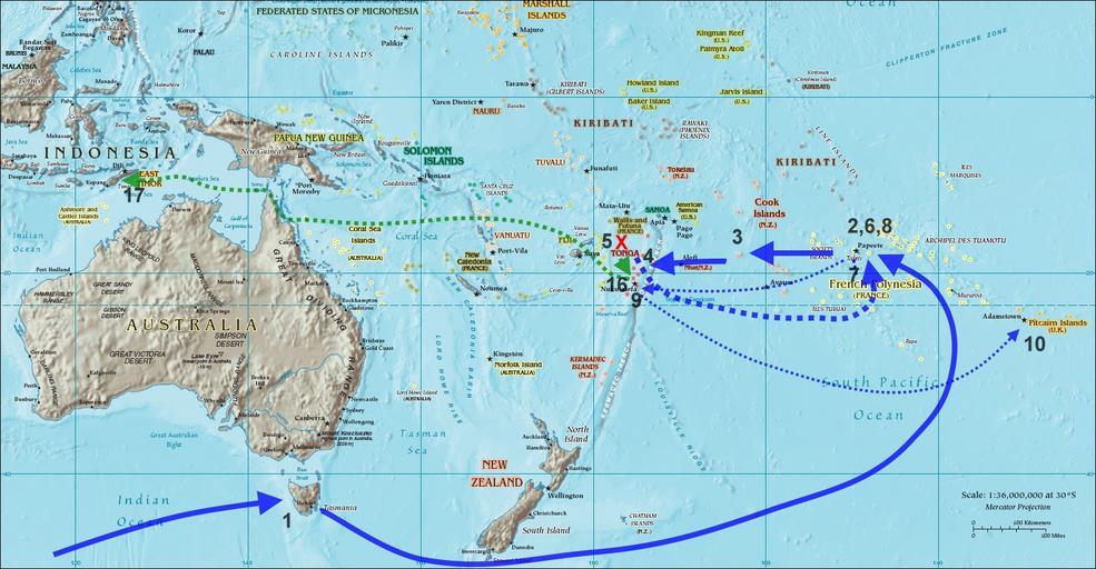 Keywords: Bountya.jpg <div style background 99efd5; > Travel of Bounty and small boat after mutiny Draft painting compiled by Travus Data key ;Pre-mutiny travel ¢ 1 1788-08-21 Tasmania Adventure Bay ¢ 2 1788-10-26 Taiti first arrival; ¢  1789-04-04 leaving for England ¢ 3 Palmerston ¢ 4 Tofua ¢ 5 1789-04-28 mutiny ;Christian's travel with Bounty to Pitcairn Is ¢ 6 Tubai then 1789-07-06 Taiti second arrival ¢ 7 1789-07-16; Tubai ¢ 8 1789-09-22 Taiti third arrival ¢  1789-09-23 final leaving ¢ 9 1789-11-15 Tongatabu ¢ 10 1790-01-15 Pitcairn 1790-01-23 burning Bounty ;Blight party's boat travel ¢ 16 Tonga ¢ 17 1789-06-14 Timor </div> https //www cia gov/cia/publications/factbook/reference South ocean map Factbooks is PD because according US law http //www chez com/pgosse/maquette/story htm Map Data Mutiny on the Bounty
