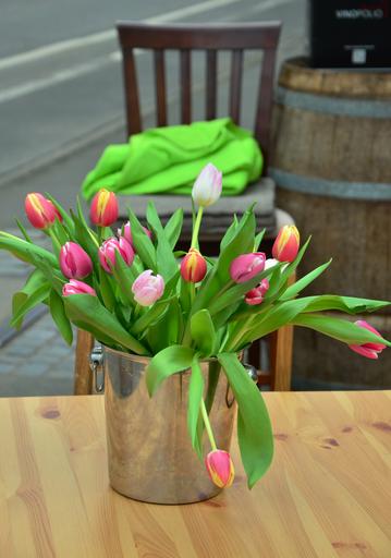 Keywords: bouquet tulips tulip bouquet straßencafè outside catering spring vase flowers strauss