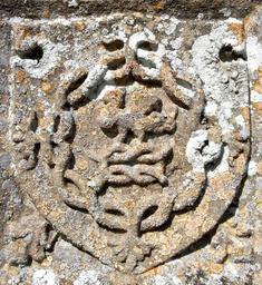 | Keywords: BourchierKnot&Falcon TawstockChurch.JPG en Escutcheon with a falcon atop a Bourchier Knot above SE door of Tawstock Church Devon Representing John Bourchier 2nd Earl of Bath 1499-1560/61 of Tawstock Court One of a pair with a similar escutcheon showing a peacock in its pride the crest of Manners the family of his 2nd wife Eleanor Manners daughter of George Manners 11th Baron de Ros own photo Lobsterthermidor <span class signature-talk >talk</span> 21 56 15 January 2014 UTC photo 2013 St Peter's Church Tawstock Bourchier knot Earls of Bath |