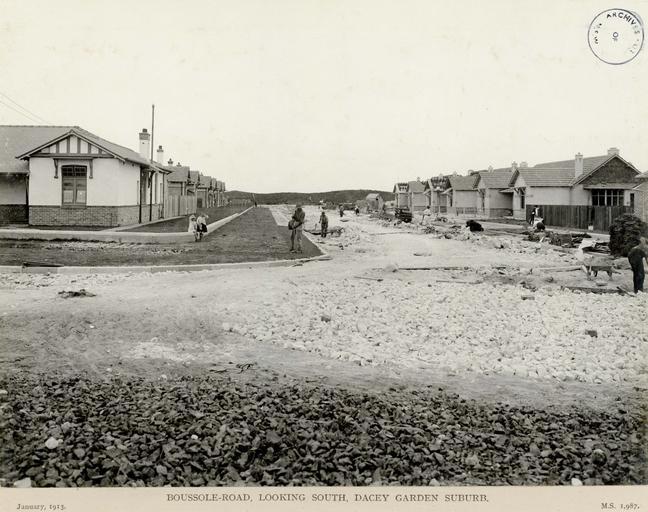 | Keywords: srnsw:series=5225 outdoor Title: Boussole Road, looking south, Dacey Garden suburb Dated: month and year only 01/01/1913 Digital ID: 5225_a018_a018000014 Rights: www.records.nsw.gov.au/about-us/rights-and-permissions We'd love to hear from you if you use our photos/documents. From a series of photographs of 'Dacey Garden Suburb' (Daceyville) - a development by the Housing Board of NSW as Sydney's "first planned modern garden suburb". Daceyville was developed between 1913 and 1918 and is located in south-eastern Sydney within the municipalities of Mascot and Botany. The images in the series show scenes of the area before development, road building, the types of houses built, shops, as well as the Public School. The suburb was named after the state parliamentarian John Rowland Dacey who played a vital role in the approval of this urban development. Many other photos in our collection are available to view and browse on our website using Photo Investigator. Title: Boussole Road, looking south, Dacey Garden suburb Dated: month and year only 01/01/1913 Digital ID: 5225_a018_a018000014 Rights: www.records.nsw.gov.au/about-us/rights-and-permissions We'd love to hear from you if you use our photos/documents. From a series of photographs of 'Dacey Garden Suburb' (Daceyville) - a development by the Housing Board of NSW as Sydney's "first planned modern garden suburb". Daceyville was developed between 1913 and 1918 and is located in south-eastern Sydney within the municipalities of Mascot and Botany. The images in the series show scenes of the area before development, road building, the types of houses built, shops, as well as the Public School. The suburb was named after the state parliamentarian John Rowland Dacey who played a vital role in the approval of this urban development. Many other photos in our collection are available to view and browse on our website using Photo Investigator. |