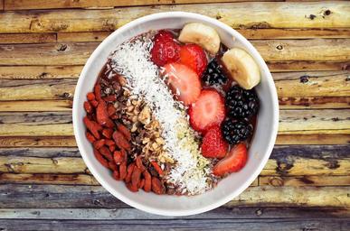 Keywords: bowl of fruit breakfast food organic bowl diet healthy fresh fruit berry fruit-salad strawberry red raspberry banana natural muesli delicious meal fiber
