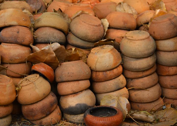 Keywords: bowls pots ceramic shape dish utensil cookware lifestyle homemade traditional plate tradition cooking rustic pile heap discarded