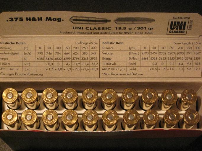 Keywords: Box of .375H&H.JPG Box of 375H H Cartridges with UNI-Classic 300-gr Bullets own Lord Mountbatten 2011-01-11 375 H H Magnum Cartridge boxes