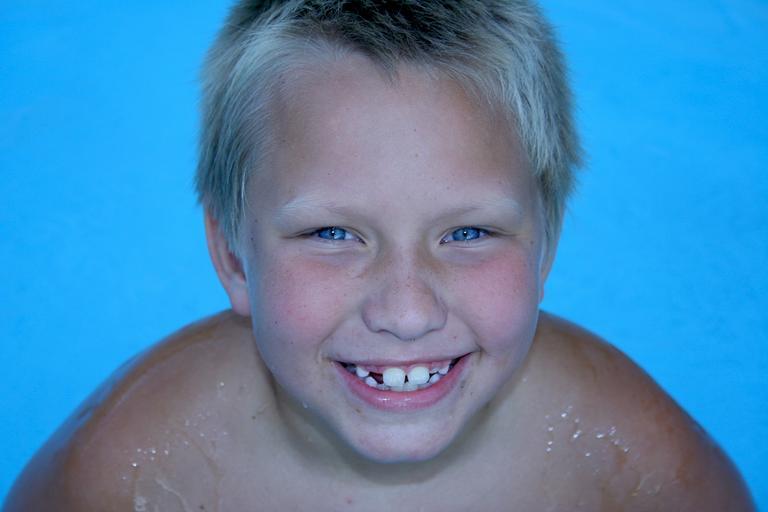 Keywords: boy child happy laughing kid swimming pool blond blue eyes