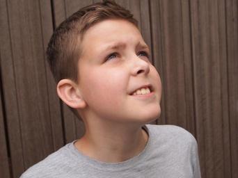 Keywords: boy face watch carefully staring crest blonde hair ear