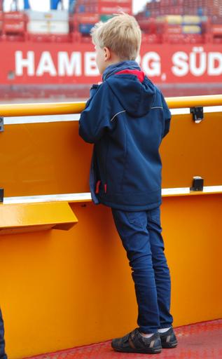 Keywords: boy port hamburg longing curiosity ferry wide world