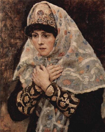 | Keywords: Boyaryna Morozova by V.Surikov - sketch 03 (Tretyakov gallery).jpg Artwork de Bojarenmädchen mit gekreuzten Armen oil canvas cm 46 35 5 de Moskau de Tretjakow-Galerie de Studie zum Historienbild »Die Bojarin Morosowa« Yorck 1884-1887 Creator Wassilij Iwanowitsch Surikow http //mail wikipedia org/pipermail/wikide-l/2005-April/012195 html Other versions PD-old-70 PD-Art-YorckProject Realist portrait paintings Surikov Portrait paintings of women Surikov Boyaryna Morozova Surikov Fur headgear in art Paintings by Vasily Surikov with fur Fur fashion in 1885 |