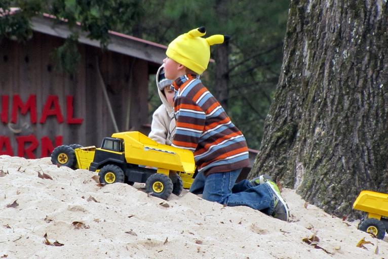 Keywords: boys playing children toys sand happy childhood fun trucks