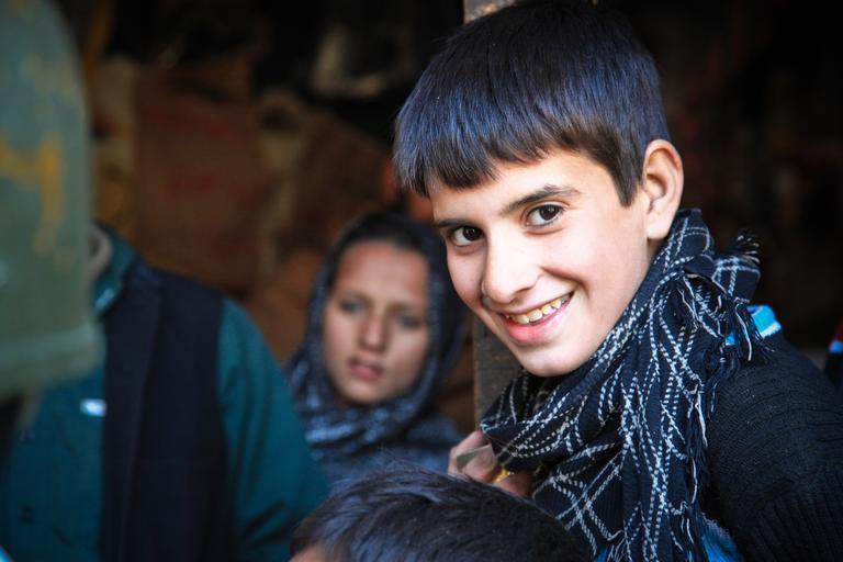 Keywords: boys poor person children happy laughing school afghani intelligent