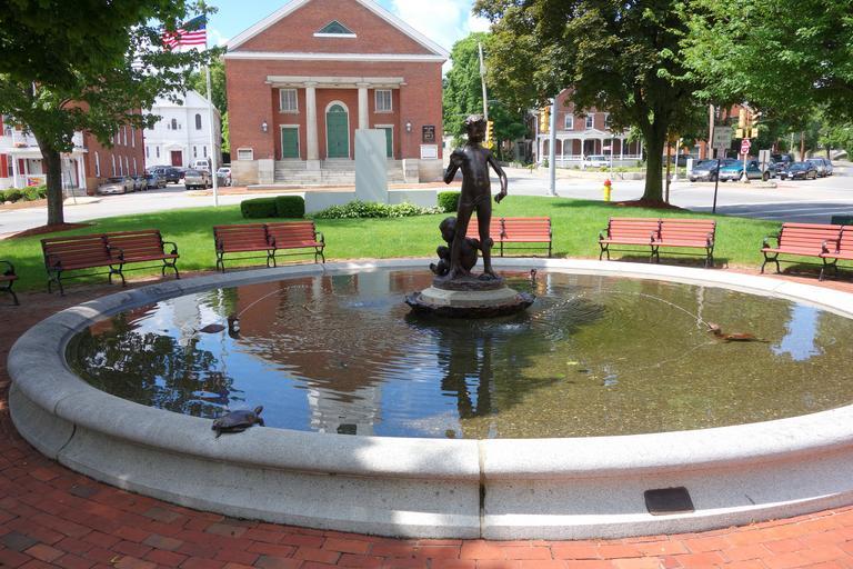 Keywords: Boys and Turtles - Fitchburg, Massachusetts - DSC08571.JPG In the center of a large granite basin stands a circular bronze sculpture depicting two nude boys One boy stands and the other crouches behind him Water sprays on the boys from the mouths of three large turtles located in the fountain basin Cire-perdue cast Brussels The fountain was a gift and presented to the City of Fitchburg on June 18 1889 by Rodney Wallace Henry A Willis and James Phillips Jr The fountain was restored in 1989 This artwork is in the public domain because it was first published before 1923 2013-06-14 14 39 43 own Daderot PD-1923 cc-zero Uploaded with UploadWizard Boys and Turtles Fitchburg Massachusetts |