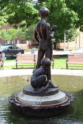 Keywords: Boys and Turtles, rear view - Fitchburg, Massachusetts - DSC08576.JPG In the center of a large granite basin stands a circular bronze sculpture depicting two nude boys One boy stands and the other crouches behind him Water sprays on the boys from the mouths of three large turtles located in the fountain basin Cire-perdue cast Brussels The fountain was a gift and presented to the City of Fitchburg on June 18 1889 by Rodney Wallace Henry A Willis and James Phillips Jr The fountain was restored in 1989 This artwork is in the public domain because it was first published before 1923 2013-06-14 14 40 31 own Daderot PD-1923 cc-zero Boys and Turtles Fitchburg Massachusetts Uploaded with UploadWizard |