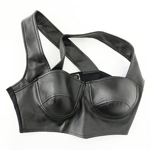 Keywords: bra leather black lingerie under clothes under garment