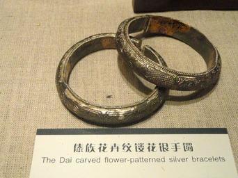 | Keywords: Bracelet - Yunnan Nationalities Museum - DSC04191.JPG  Dai silver bracelets Jewelry in the Yunnan Nationalities Museum Kunming Yunnan China I took this photograph 2011-08-13 02 02 51 Daderot Public domain Jewellery in the Yunnan Nationalities Museum Dai jewelry |