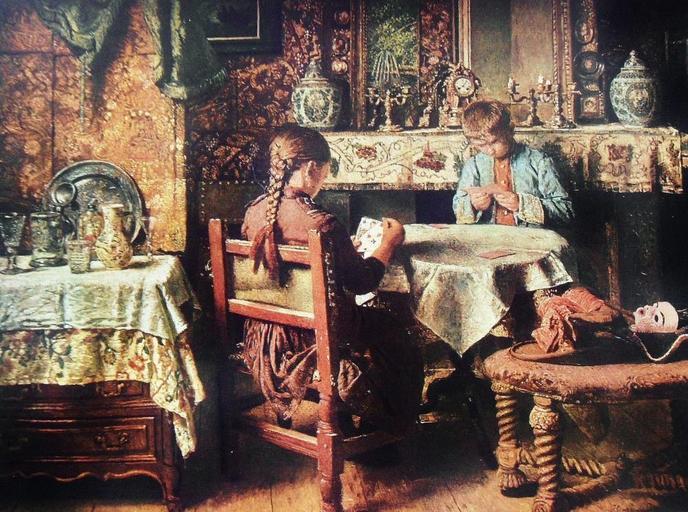 | Keywords: Braekeleer, Henri De — Het kaartspel — 1887.jpg  en The card players Het kaartspel Alternate titles Children playing cards 1887 oil canvas Museum Koninklijk Museum voor Schone Kunsten Antwerpen object history credit line http //www terminartors com/artworkprofile/De_Braekeleer_Henri-The_card_players accession number http //cultured com/images/image_files/2864/3431_m_henri_de_braekeleer_003 jpg <gallery> File Braekeleer-partie de cartes jpg Musées royaux des Beaux-Arts de Belgique Bruxelles </gallery> PD-old-100 Henri De Braekeleer 1887 Belgian paintings in the Royal Museums of Fine Arts of Belgium 1887 paintings People in rooms in art Realist paintings of children People with sculptures in art Men with hats in art 19th-century oil on canvas paintings People playing card games in art Paintings of children Vases in still-life paintings 19th-century genre paintings Masks in art 1880s paintings in Belgium Uploads by Mattes from external sources 1880s still-life paintings |