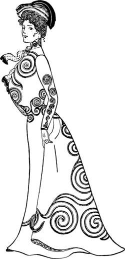 Keywords: Braided elaborately in black.gif PD-old The Ladies' Home Journal September 1900 page 17 Fashion in 1900 Ladies' Home Journal Art Nouveau fashion Drawings of women in corset Braids in art