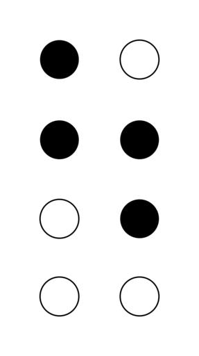 Keywords: Braille8 Dots-1256.svg 8 dot Braille letter/symbol Dots-1256 Unicode U+282D Created by 3247 using braille8 pl Braille letters 8 dots Braille_00101101