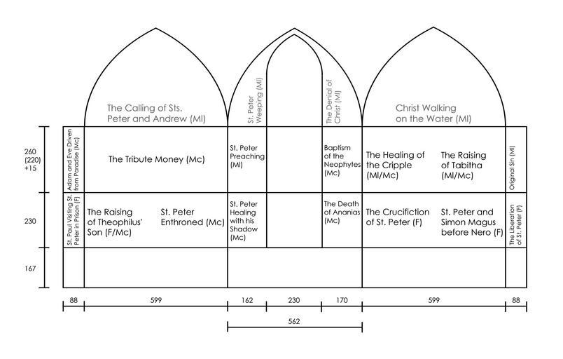 | Keywords: Brancacci.jpg Schematics of the Brancacci Chapel with measures in cm the individual frescoes and the artists to whom they are attributed Masaccio Mc Masolino Ml or Filippino F The frescoes on the upper level in gray have been painted over and can no longer be seen The paintings on the upper left and right pier are somewhat shorter than the ones on the wall 260/220 while between the two bands of frescoes there is a ornamental strip 15 Own work but based on L B Watkins The Brancacci Chapel Frescoes 1980 pp 325-8 2008-02-10 User Lampman <gallery>File Brancacci_color jpg</gallery> ImageNote 1 2111 526 88 279 2352 1497 2 1 Temptation of Adam and Eve by Masolino 300px ImageNoteEnd 1 ImageNote 2 262 529 88 274 2352 1497 2 2 Expulsion from the Garden of Eden by Masaccio 300px ImageNoteEnd 2 Brancacci Chapel 00 |